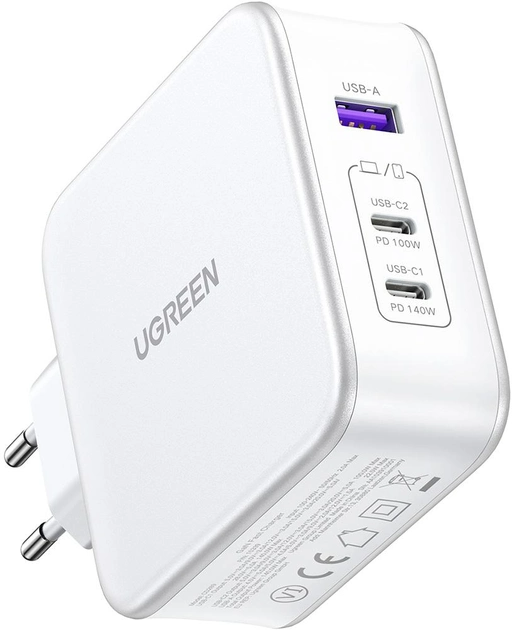 Мережевий зарядний пристрій Ugreen CD289 GaN Fast Charger 140Вт with Cable White (15339)